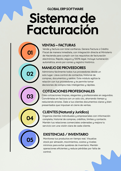 En Global ERP queremos ayudarte a simplificar la gestión de tu empresa. Pregunta sin ningún compromiso sobre nuestros planes y beneficios, estamos listos para asesorarte. Además, solicita un demo gratuito y conoce paso a paso cómo funciona el sistema y cómo puede adaptarse a tu negocio. Haz clic en el botón de Más Información y descubre todo lo que Global ERP puede hacer por ti. ¡Empieza hoy mismo a transformar tu empresa!